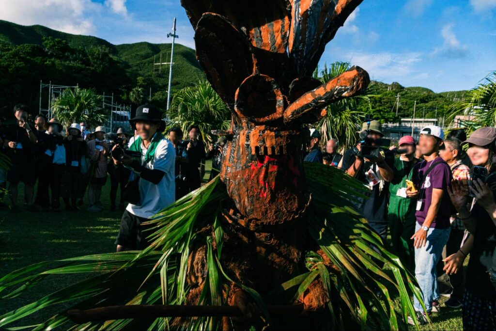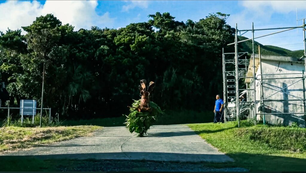 現在のボゼの装いがビロウになったことにもまた、必然性があるのかもしれない。ビロウとボゼと男根、それぞれの記号的関係はあまりにも強く共鳴している。ビロウの森は、その内にある空虚な空間に精霊を現出させる。ボゼは男根の生命力を象徴するビロウの葉を纏いながら、「ボゼマラ」によって赤シュイを塗りつける。