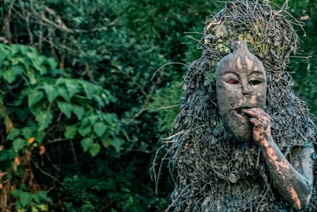 悲鳴が太鼓と混じり合う。ボゼはビロウの葉に身を包み、耳まで裂けた巨大な口を真っ赤に広げてやってくる。全部で3体でやってくる。血走ったような目には「羽」と呼ばれる大きな瞼とまつげをつけている。羽を揺らし、全身にまとっている赤土を塗りつけてくる。その手にはボゼマラと呼ばれる、男性器に似せた棒を握りしめている。